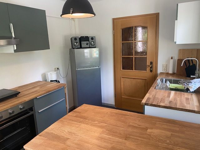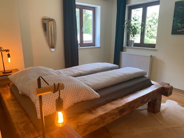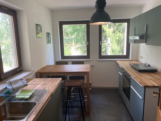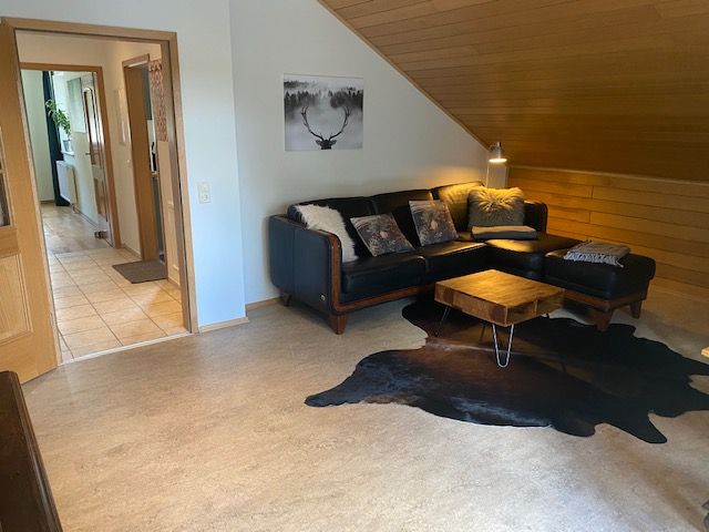 The fully equipped Fichtelgebirge holiday flat awaits your guests in a cosy ambience. Retro style with deer antlers meets modern living. The flat has a bath with WC and washbasin. Fresh towels are of course included.