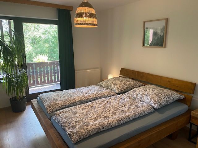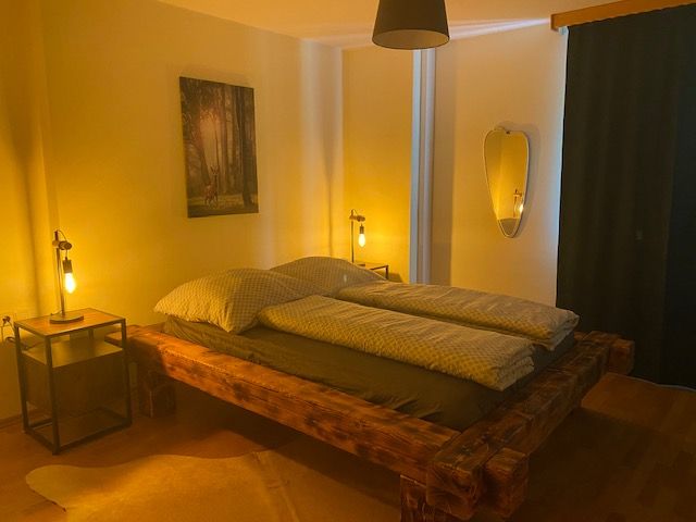 Für vier Personen stehen zwei Schlafzimmer zur Verfügung. Das Master-Bedroom mit Balkonzugang verfügt über ein massives 180x200er Bett. Im zweiten Schlafzimmer mit Blick über den nördlichen Platz bettet Ihr euch in ein Balkenbett 140x200m.