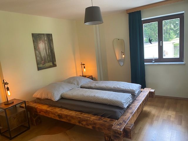Die voll ausgestattete Ferienwohnung Fichtelgebirge erwartet Ihre Gäste im gemütlichen Fichtelgebirgs-Ambiente. Retrostyle mit Hirschgeweih trifft modernes Wohnen. Die Wohnung verfügt über ein modernes Badezimmer mit Dusche, WC und Waschbecken. Frische Handtücher sind natürlich inclusive.